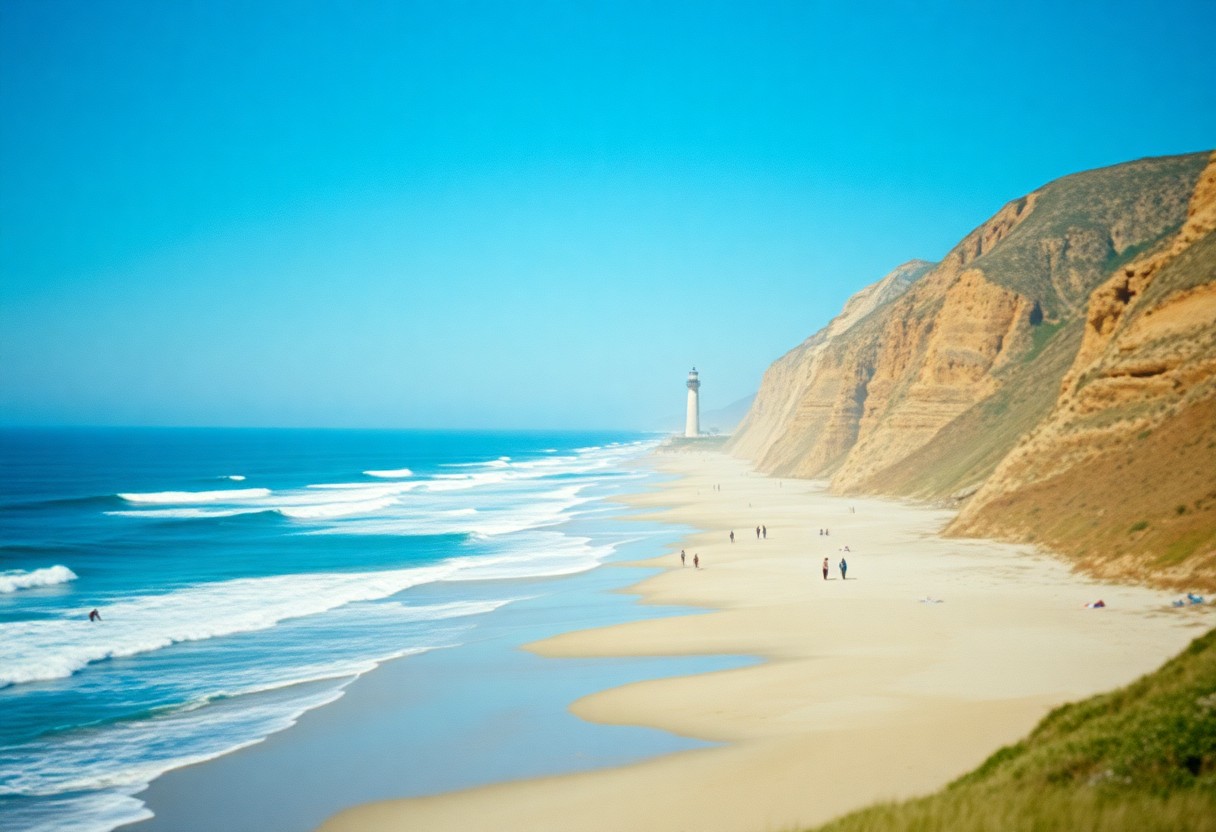 At Malibu, you’ll find stunning stretches of sand, such as Zuma Beach and El Matador State Beach, where you can enjoy sunbathing or beachcombing. The area also offers fabulous dining options, including beachfront restaurants that serve fresh seafood. If you’re up for it, explore the scenic coastal hikes that boast breathtaking vistas of the Pacific Ocean. This beach getaway promises a delightful day filled with both relaxation and exploration.
